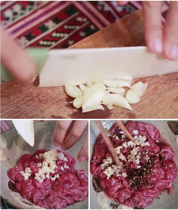 2. Ướp thịt trâu: Trộn thịt trâu với một chút nước mắm, đường, tiêu và tỏi băm. Ướp trong khoảng 15-20 phút.