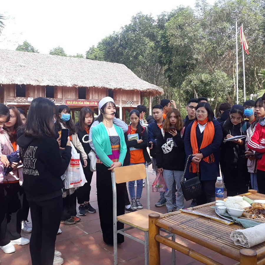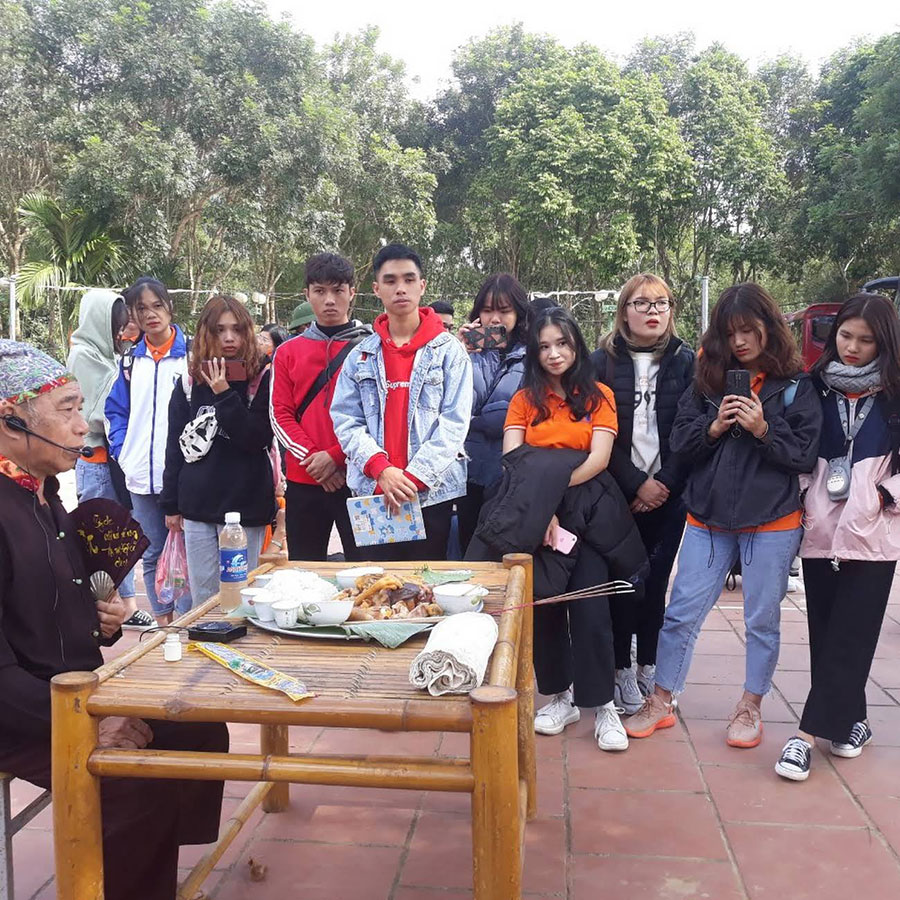 Các học sinh, sinh viên đến tìm hiểu văn hóa, phong tục tại xóm Ải